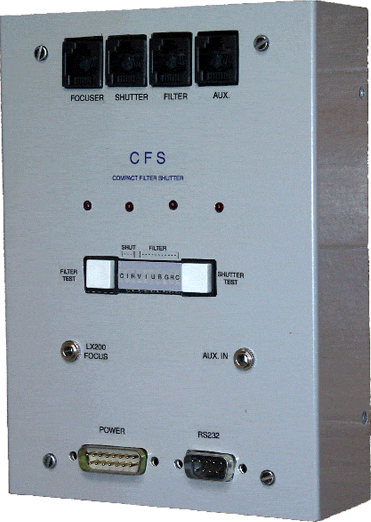 The Focus, Filter and Shutter Controller, (CFS) is a system formed by a dual filter wheel and a four stepper motor controller.