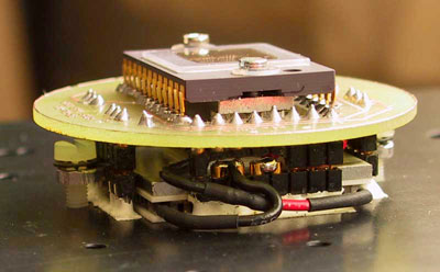 Fig.4 Detalle del circuito impreso del CCD y de los módulos peltier. El módulo pequeño va unido a las dos piezas de aluminio con pegamento termoconductor. El resto de uniones térmicas se hacen con pasta termoconductora normal.