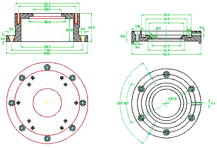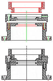 Fig.1 Cubierta del CCD y sección de estas dos piezas acopladas a un adaptador para S/C.