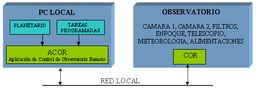 Modo local: el observatorio está distante pero tanto el PC como el COR están en la misma red. Este es el modo normal de trabajo actual y el punto de partida para siguientes ampliaciones.