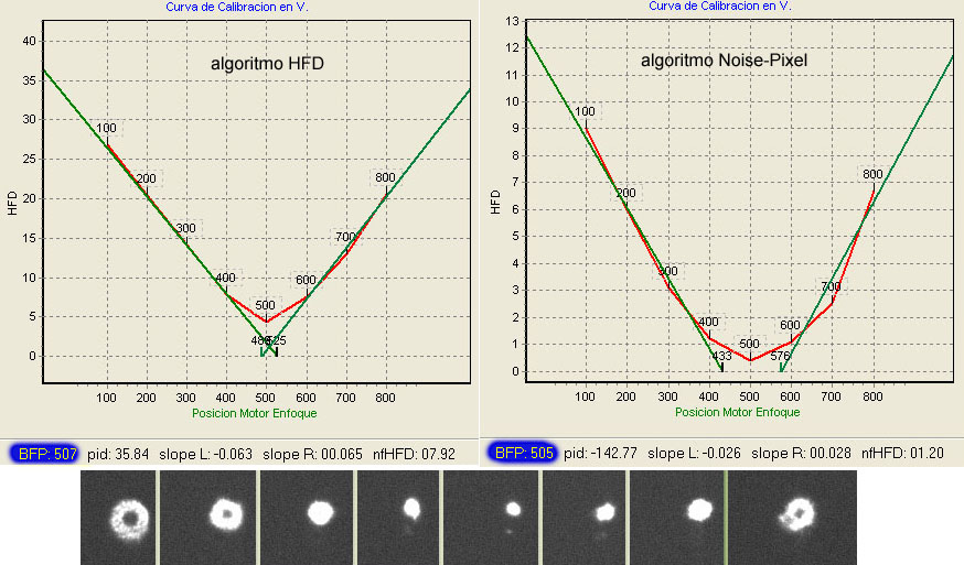 Enfoque Automático: (Nuevo) Es posible enfocar automáticamente por dos métodos diferentes: con el ya clásico HFD (Half Flux Diameter), que implica trabajar con una única estrella y con el más novedoso método llamado Noise Pixel (NP), para el que se puede usar tanto una estrella como toda la imagen completa con múltiples estrellas y objetos.