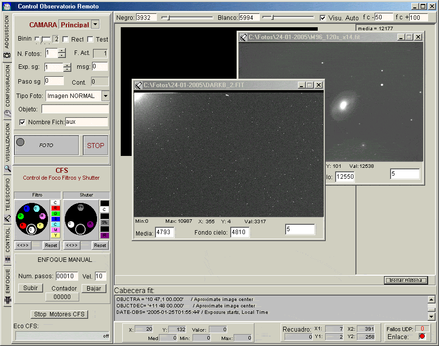 ADQUISICION: manejo de las dos cámaras, control de filtros y enfoque manual.